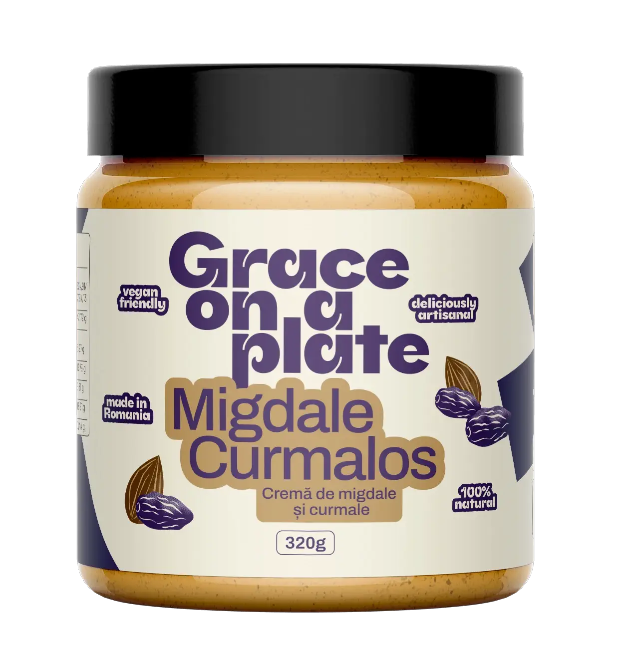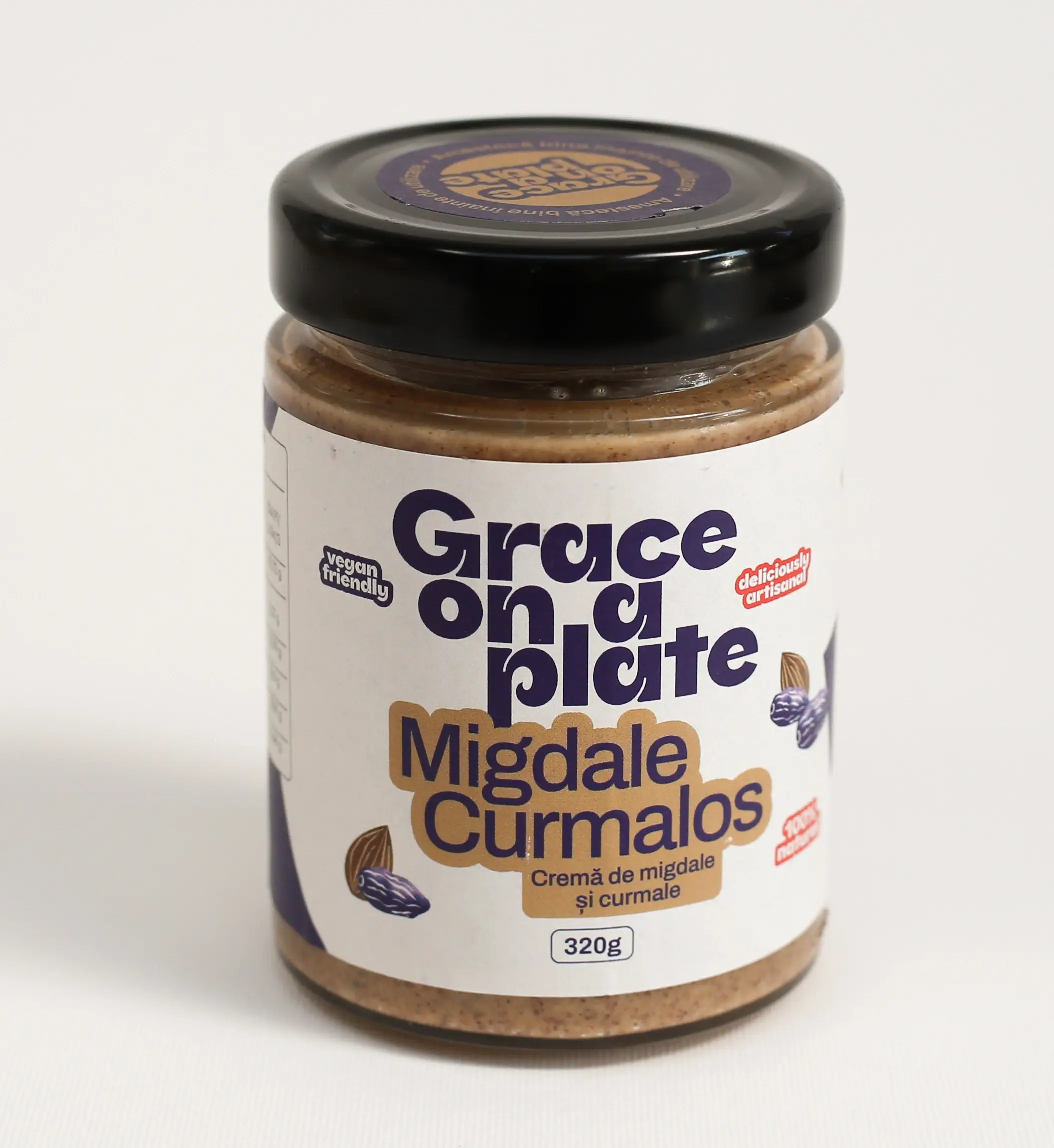 Unt de migdale și curmale preparat artizanal. Delicată și nutritivă, crema combină bogăția migdalelor cu dulceața naturală a curmalelor, pentru un gust desăvârșit. Fără adaos de zahăr.